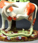 Antique Staffordshire pearlware pottery bocage figure of a cow circa 1820