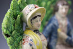 Antique Staffordshire pottery bocage figure group of Persuasion early 19th century