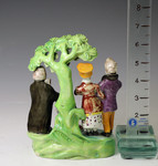 An unusual and rare version of "The New Marriage Act",Staffordshire pearlware glazed pottery figure bocage group.
