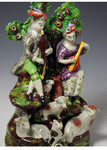 Antique Staffordshire pottery figure group of musical shepherds circa 1825