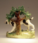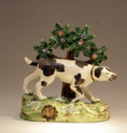 ANTIQUE STAFFORDSHIRE POTTERY FIGURE OF A SPORTING DOG WITH BOCAGE