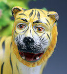 The figure of this ferocious feline is executed in a naive fashion which adds a touch of comedy to the appeal of the piece.