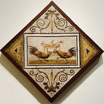 Re; image of Roman mosaic.Cock fighting was banned in England in 1835.