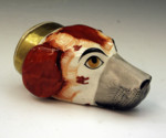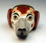 Antique Staffordshire pottery stirrup cup in the form of a spaniel dogs head.