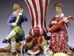 The figure group is very decorative with fine modelling and good enamel colour decoration.