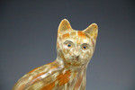 A rare Prattware pottery figure of a cat seated on a base.