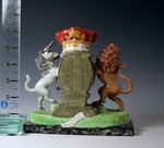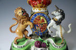 Antique Staffordshire Royal Arms figure group in pearlware marked Walton. circa 1820 period