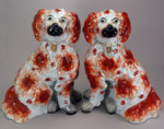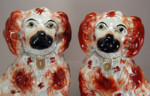 Antique Victorian pair of Staffordshire pottery figures of spaniel dogs