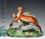 Deer hunted by three dogs Staffordshire pearlware pottery figure antique period early 19thc.