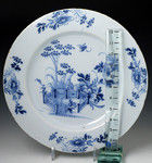 A very fine and clean crisp Liverpool delftware plate decorated in blue with flowers and fence in chinoserie fashion.