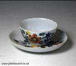 Delftware pottery polychrome decorated tea bowl and saucer .Liverpool delftworks mid 18th century