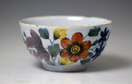 A fine and rare delftware pottery teabowl and saucer with polychrome floral decoration in the Fazackerley palette and style with tinged blue glaze. These small gems of pieces have endured over 250 years are rare survivors.