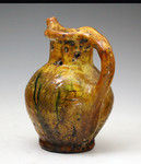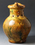 Antique English earthenware Donyatt Pottery puzzle jug with a good atmospheric glaze.