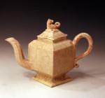 The finial on the cover of this early English teapot is a figure of a sea-horse.