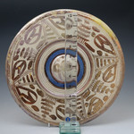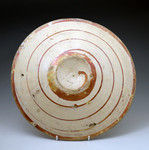 Early Hispano Moreque pottery charger decoarted with pink lustre and a blue band. C1650
