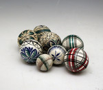 Eight miniature Pottery carpet balls (the largest 1.75 diameter) mid 19th century.