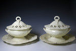 English creamware pottery tureens and stands, 18th century probably Leeds Yorkshire