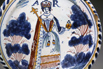 English delftware earthenware blue dash Royalty portrait charger Queen Anne circa 1700 period, Bristol or Brislington.
