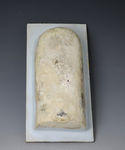 A rare English delftware recess tile or niche modeled with a domed top and a flat base and well decorated with a standing male figure in fine clothes. The border is decorated with berries and leaves. The piece is two delftware tiles high and one tile wide indicating that they were used as part of a wall feature. Attributed to the Bristol Delftworks mid 18th century.