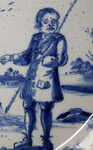 A rare and unusual English delftware dish with a well executed blue image of a forlorn shepherd bemoaning the loss of his lamb and ewe.