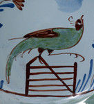 English delftware plate with pheasant perched on a gate antique period 18thc.