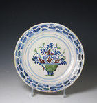 English delftware polychrome decorated plate Bristol pottery circa 1740 period