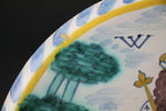 The border is a classic blue dash. A very rare piece of delftware with strong historical significance.