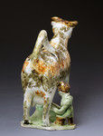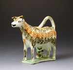 Classic early features a fine thin base, good potting and decoration with a good pearlware glaze. The figure has real antique overtones which now render this a good quality folk art piece.There is a small nibble at the tip of one horn and some fritting around the original cover.This creamer is rare on several counts but significantly it is one of the few pieces to come onto the market without restoration.