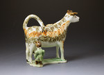 Antique pottery cow creamer complete with the figure of a milking maid.