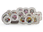 English pottery dessert service with botanicals, Don Pottery Yorkshire early 19th century