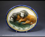 English pottery plaque with figures of two lions Pratt ware antique period early 19th century