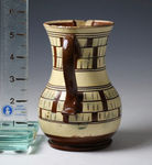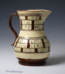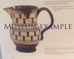 A very rare slipware pitcher with a checkerboard type decoration in brown and cream.