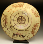 The dish has old rivet (tinker make-do repairs) which add a touch of humanity to the piece.