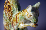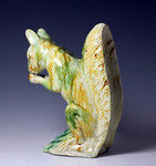 Late 18th cenury English pottery figure of seated squirrel eating a nut, Staffordshire c1785
