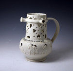 A fine and rare Nottingham Salt-glaze stoneware pottery puzzle jug of good form with interesting decorative sprigs of figures mainly associated with tavern life.