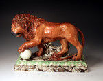 Majestic Staffordshire pottery Medici Lions on bases.
