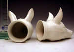 A striking pair of Staffordshire pottery fox head stirrup cups with a pearlware glaze.