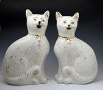 A fine and rare pair of white seated cats with gilt decoration produced by the Alloa Pottery Scotland in the Late 19th century.