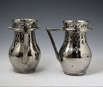 A very rare pair of silver luster puzzle jugs with an impressed inscription challenging to pour without spilling for a wager.