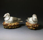 Pair of Staffordshire figures of doves in the form of tureens pearlware c1820