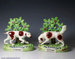 Pair of Staffordshire pottery dogs titled Pointer and Setter. made in 1820 period England