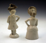 Pair of Staffordshire pottery figures in saltglaze c1750