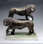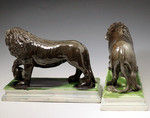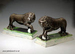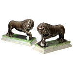 Pair of Staffordshire pottery figures of Lions by Ralph Wood, late 18th century England.