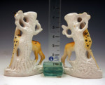 Antique Staffordshire pottery figures of jungle animals are always rare, amongst the very rarest are figures of Giraffes. The giraffe figures are modelled standing on a base with a tree which has been modelled as a spill vase.
