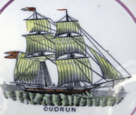 PINK LUSTER POTTERY PLAQUE OF SHIP GUDRUN