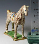 A fine and rare example of a sponge decorated horse standing on a translucent green base . The figure is well modeled and has a strong decorative folk appeal.