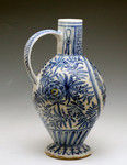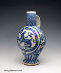Potuguese tin glaze ewer in blue with polychrome decoration dated 1635