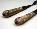 RARE PAIR OF AGATE WARE VARIAGATED POTTERY FORKS STAFFORDSHIRE