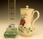A very good saltglaze pottery jug with original cover.