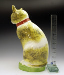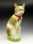 A large life size well modelled and coloured figure of a seated cat wearing a red ribbon and a contented smile.One of the best figures produced of a cat by the English potters.